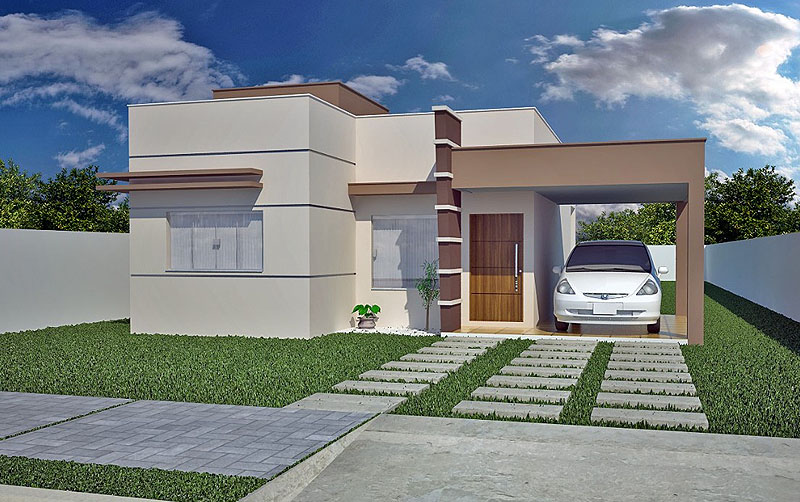 Você receberá FACHADA 3D, FRONTAL E FUNDOS, mostrando o desenho da elevação frontal da casa, caracterizando as janelas, portas e revestimentos.